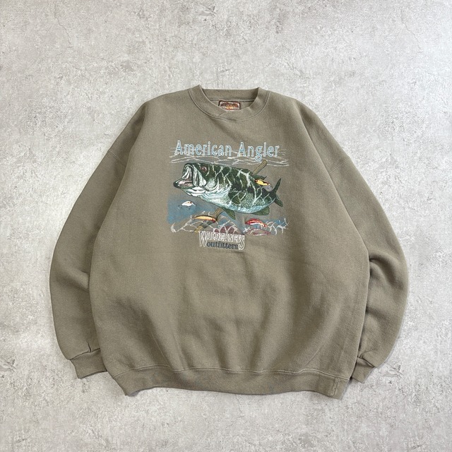 90s USA製 WILDERNESS outfitters American Angler Printed Sweatshirt