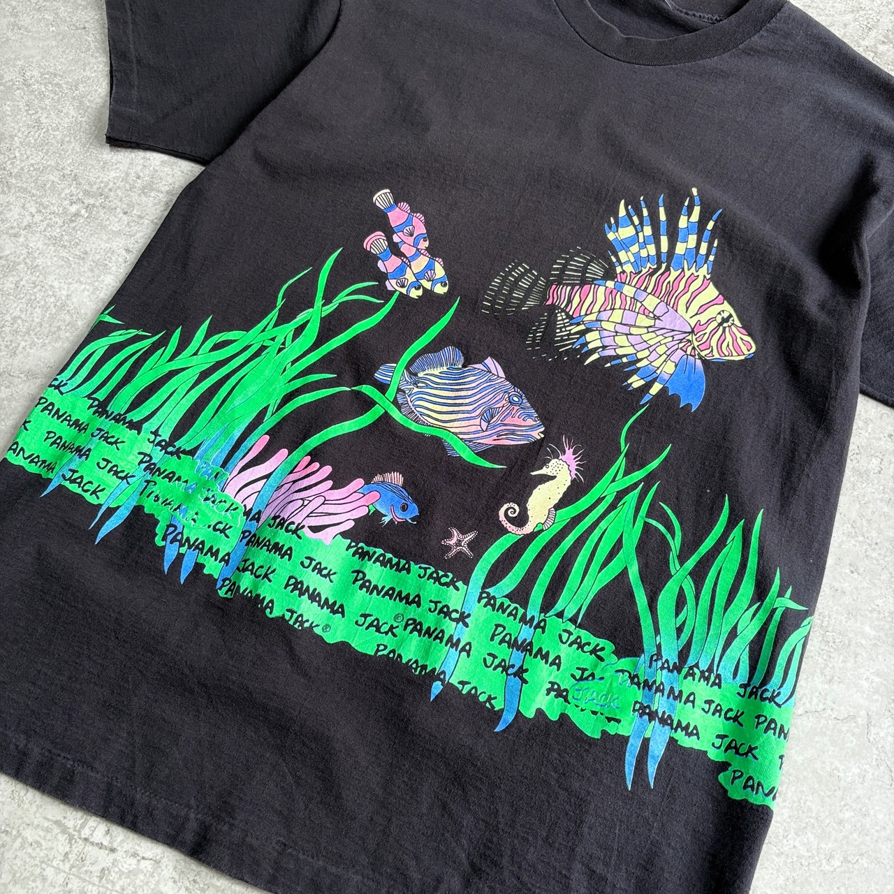 90s USA製 パナマジャック 熱帯魚 ネオンプリント 魚 フィッシュ TEE Tシャツ