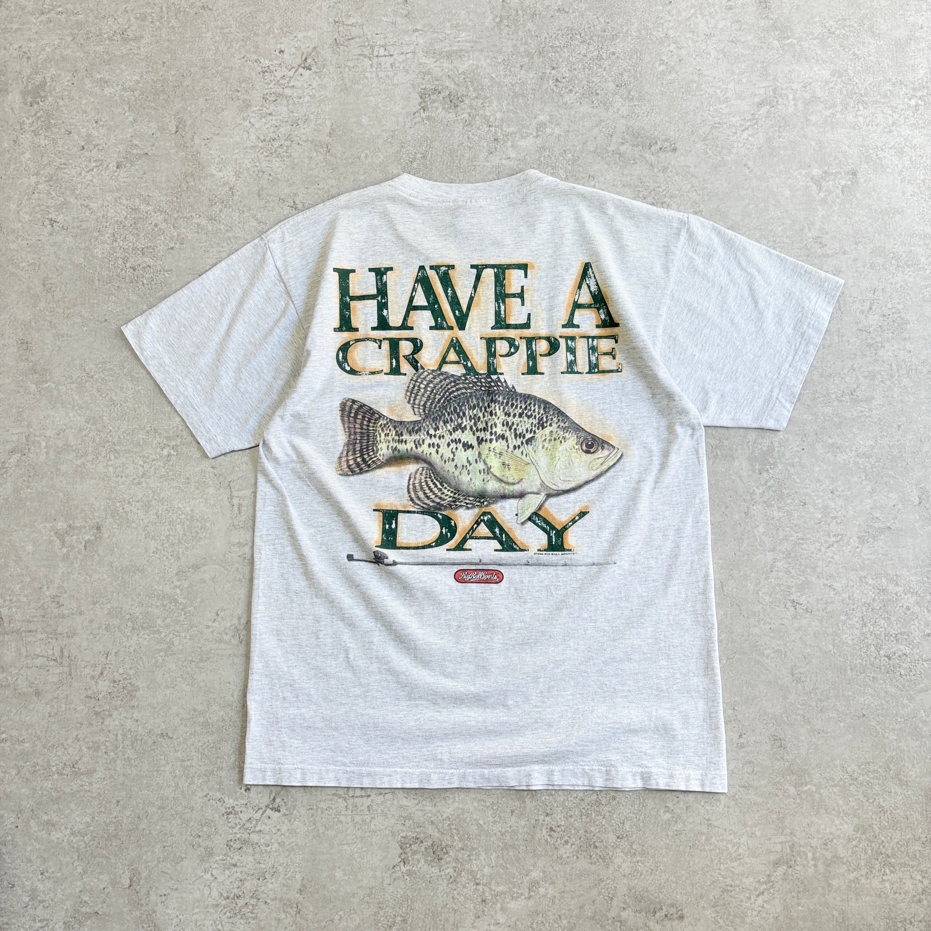 90s USA製 BIG BALL SPORTS ” HAVE A CRAPPIE DAY ” クラッピー 魚 バックプリントTEE Tシャツ