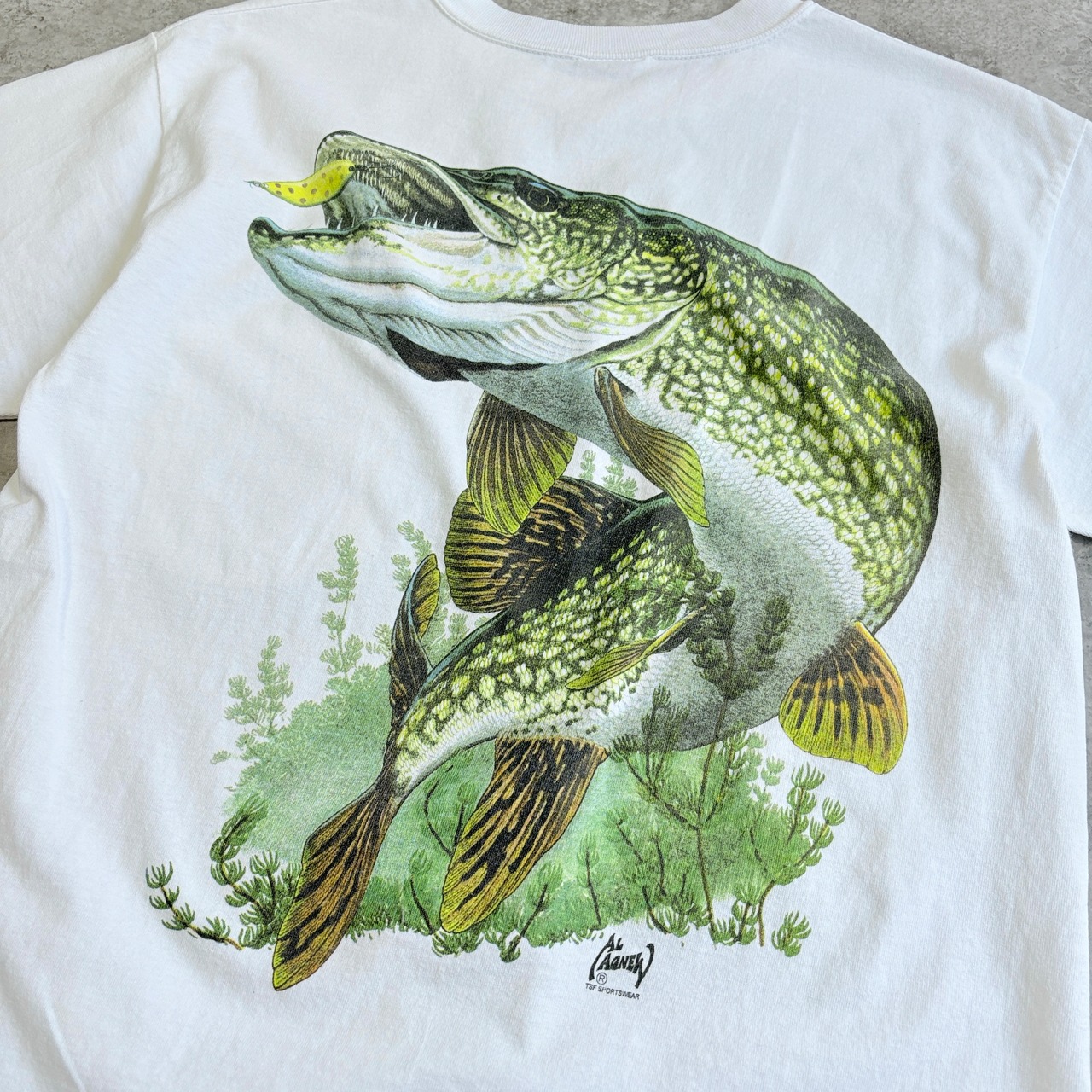 90s USA製 アル・アグニュー アート ノーザンパイク 魚 フィッシング バックプリントTEE Tシャツ