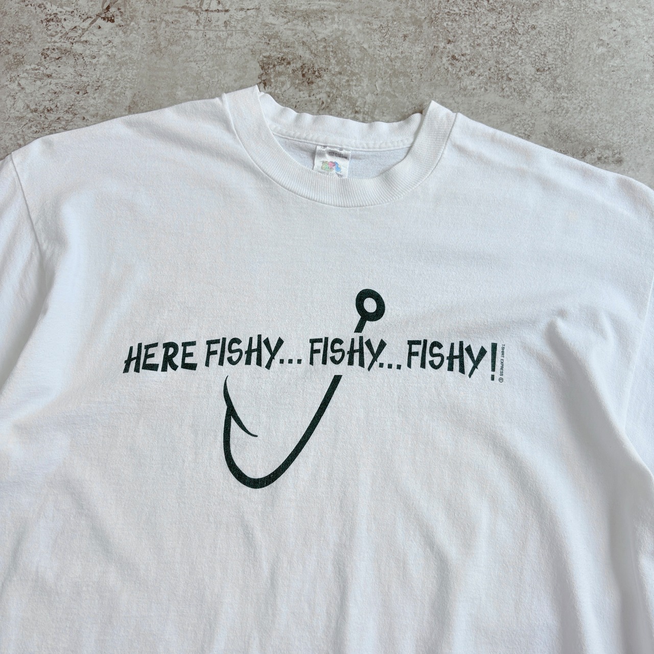 90s USA製 FRUIT OF THE ROOM HERE FISHY.. FISHY..FISHY! Printed T-shirt 【white】