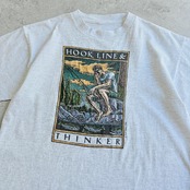 90s 1994年 レイトロール フィッシュアートTEE Tシャツ 【 フック、ライン、シンカー 】 魚 トラウト 考える人