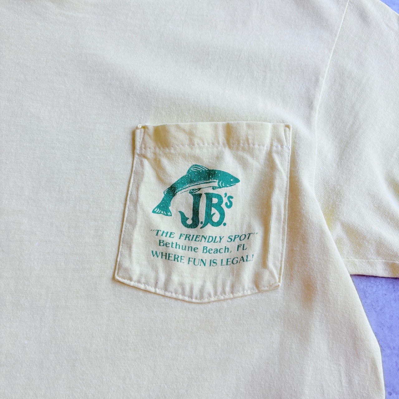 90s USA製 J.B's ” フィッシング キャンプに夢中 ” 魚 バックプリントTシャツ ポケTEE