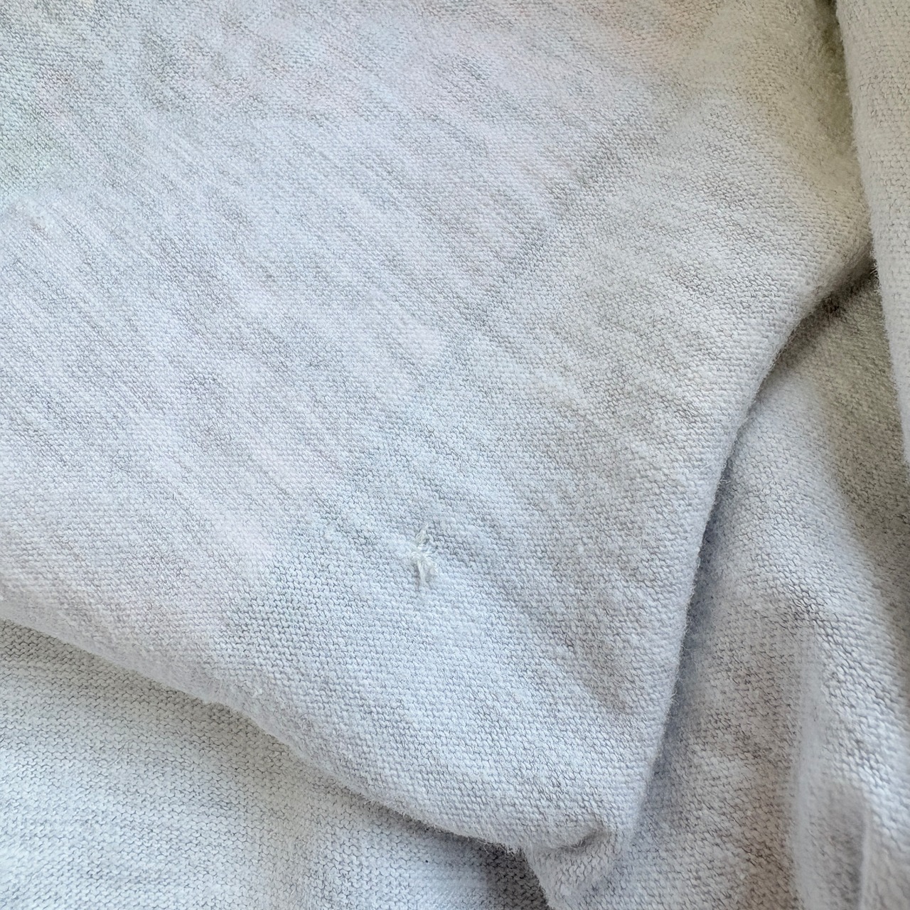 ・前身頃(左側プリント横・右裾角) 破れ(修理済)