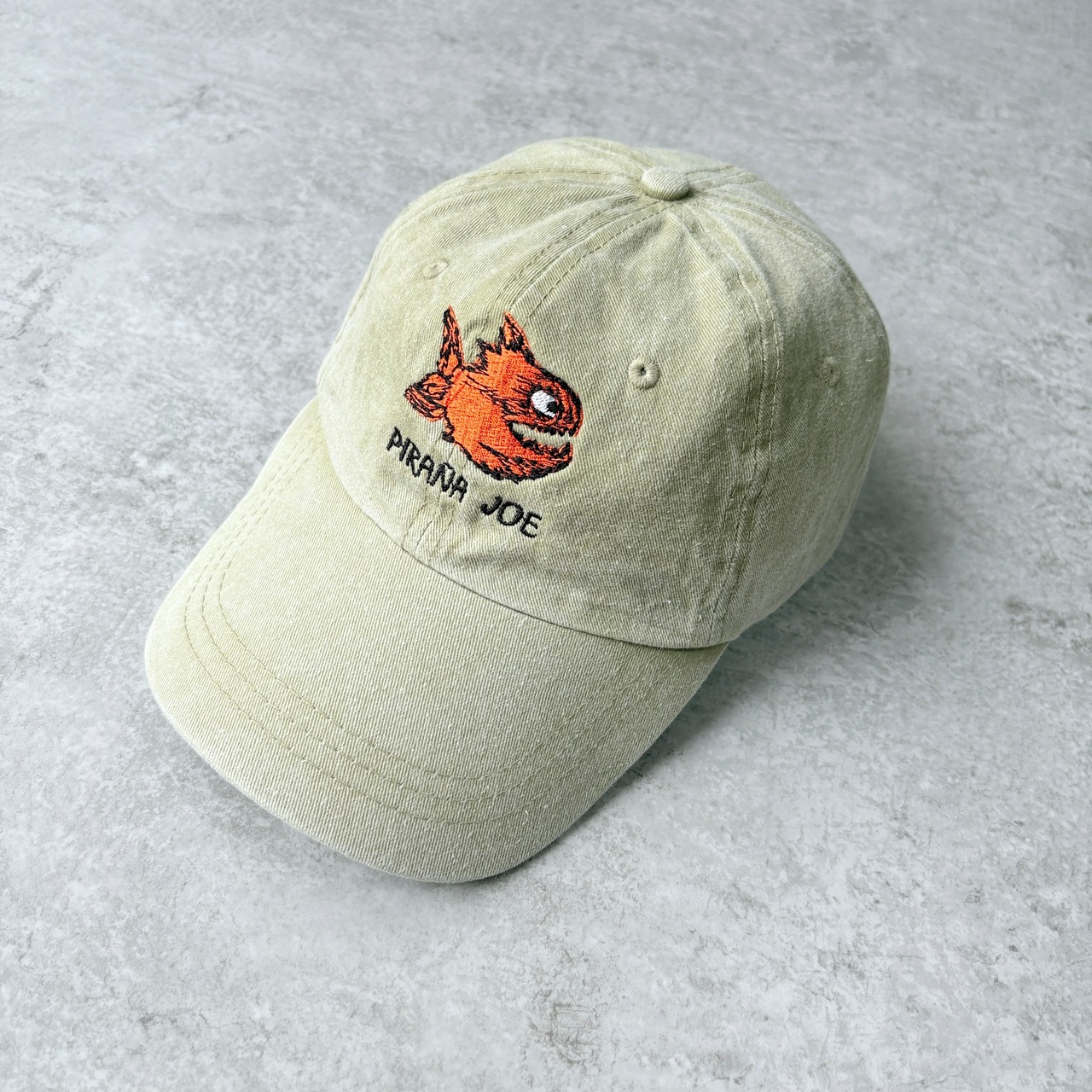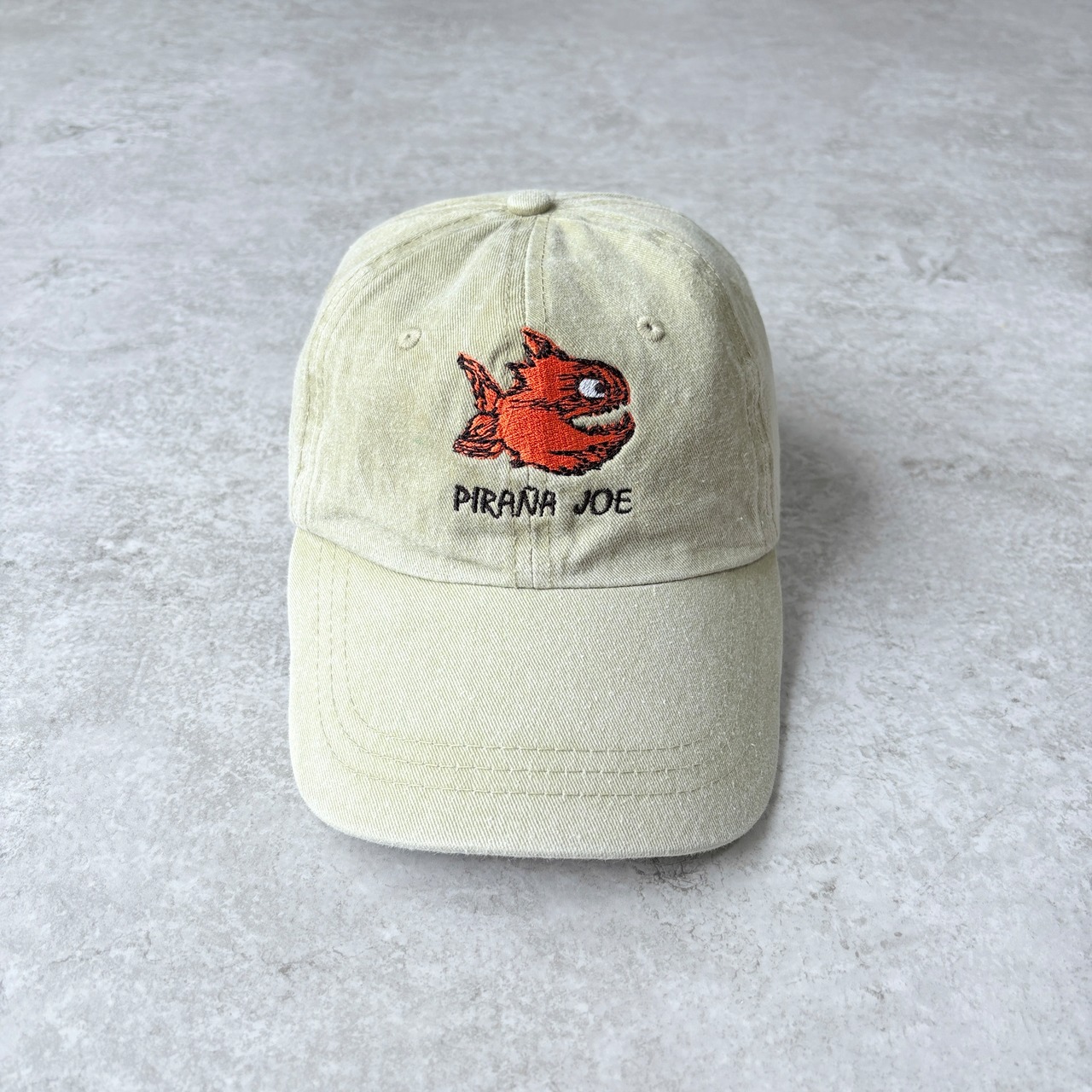 90~00s PIRANA JOE Fish Logo 6panel Cap 【 Pigment beige】