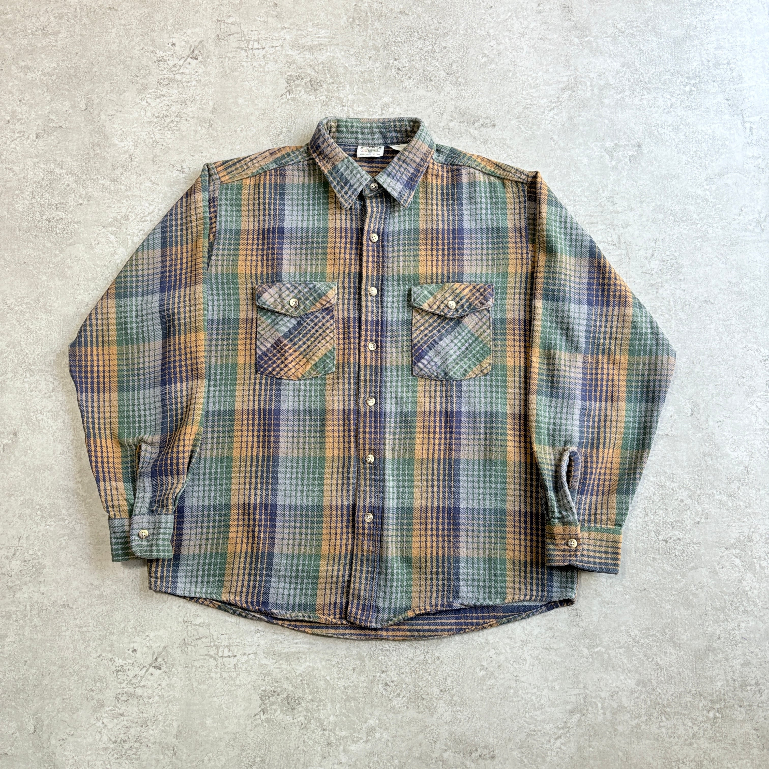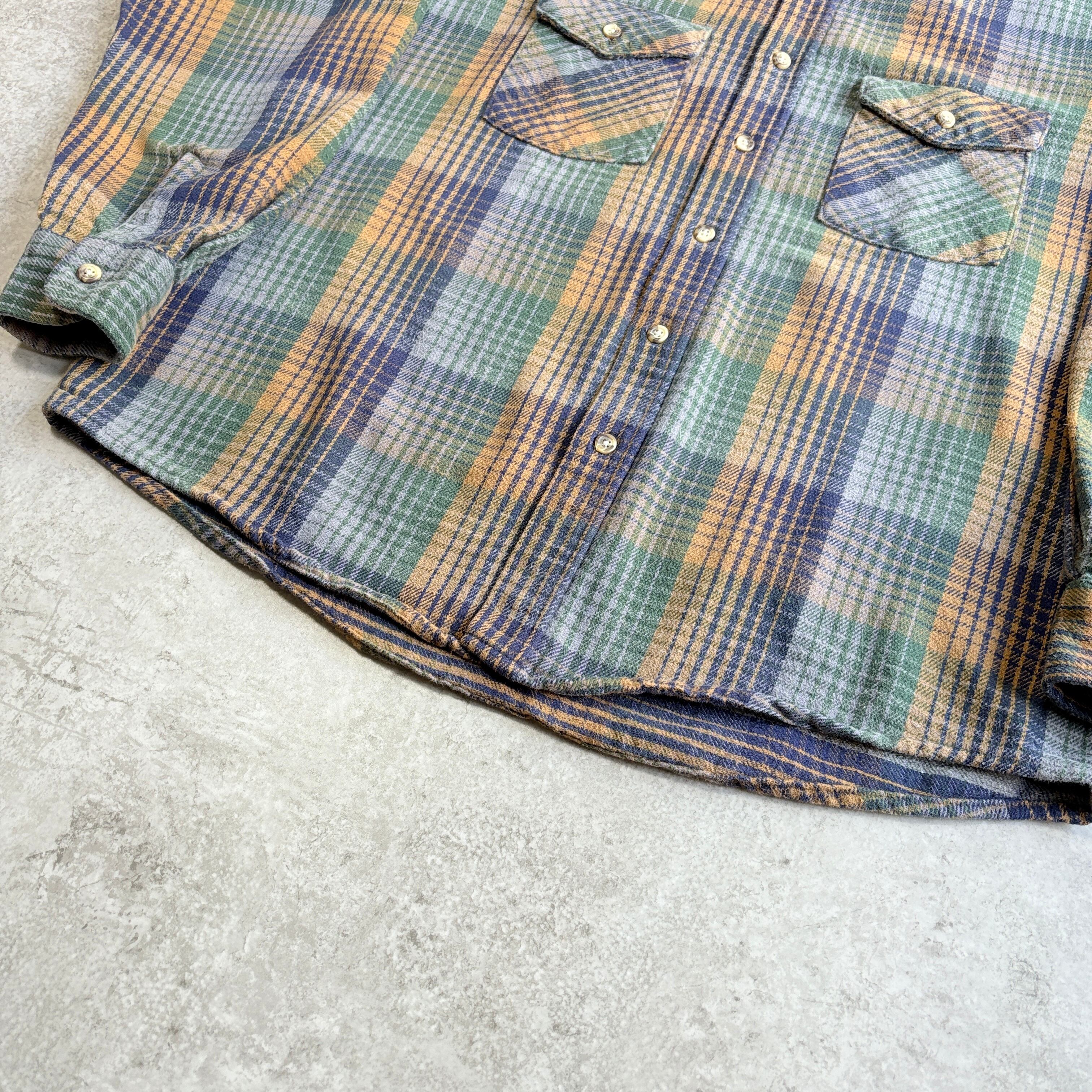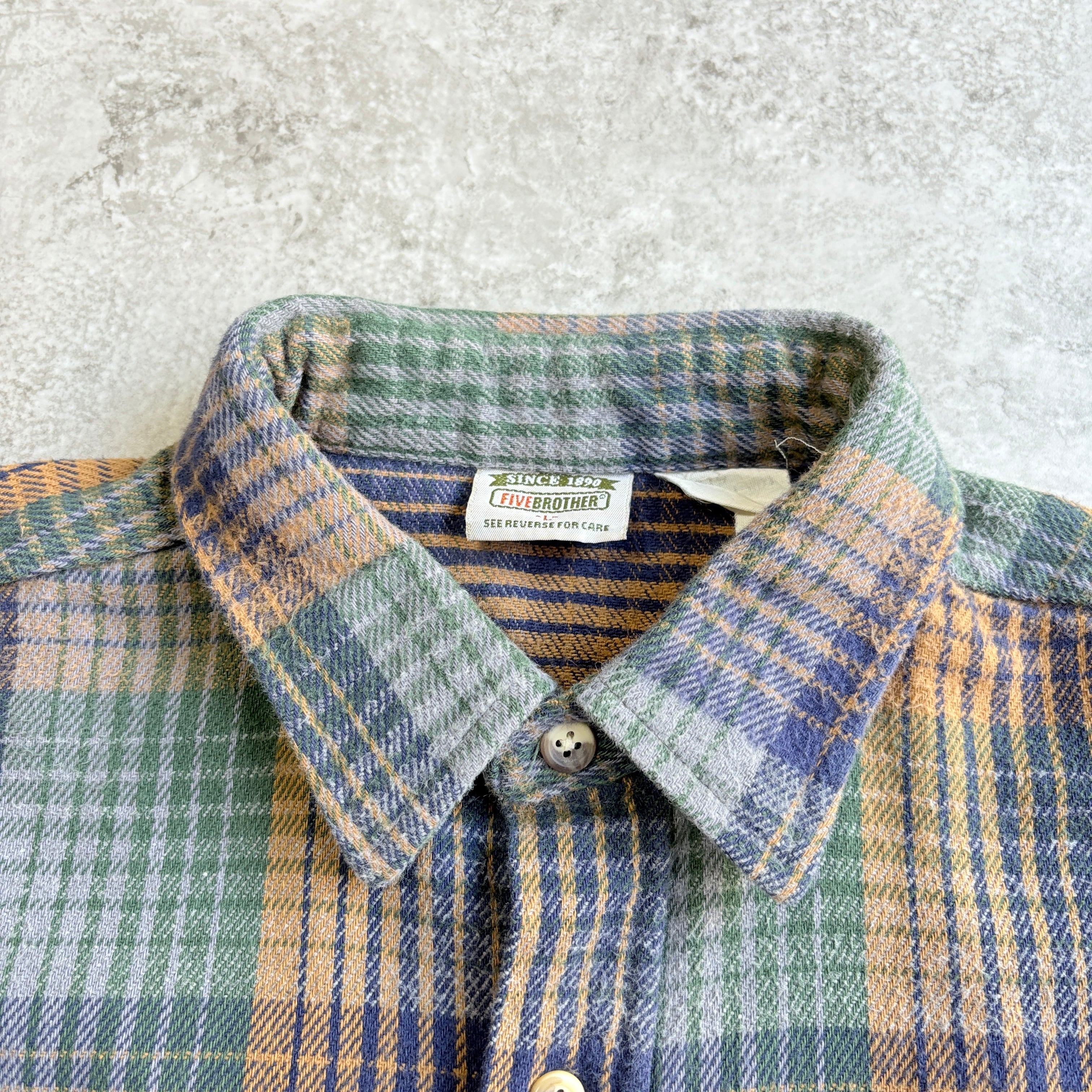 90s USA製 ファイブブラザー ヘビーネルシャツ ヘビネル チェック【 ネイビー×オレンジ×グリーン】