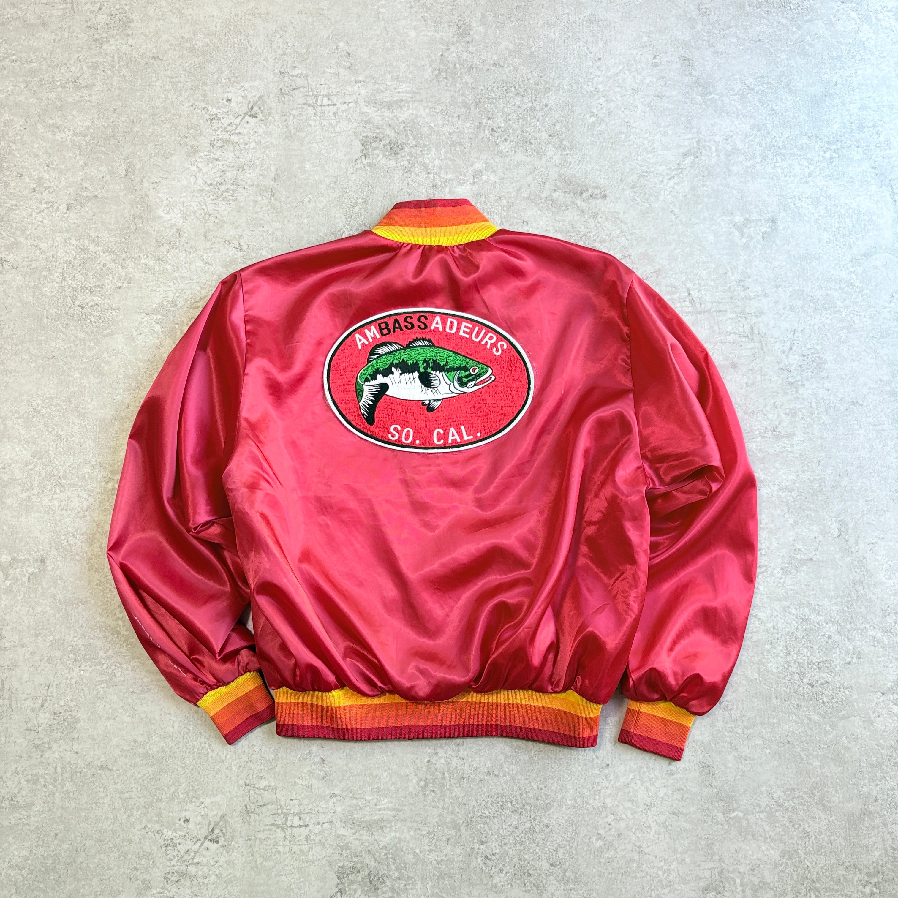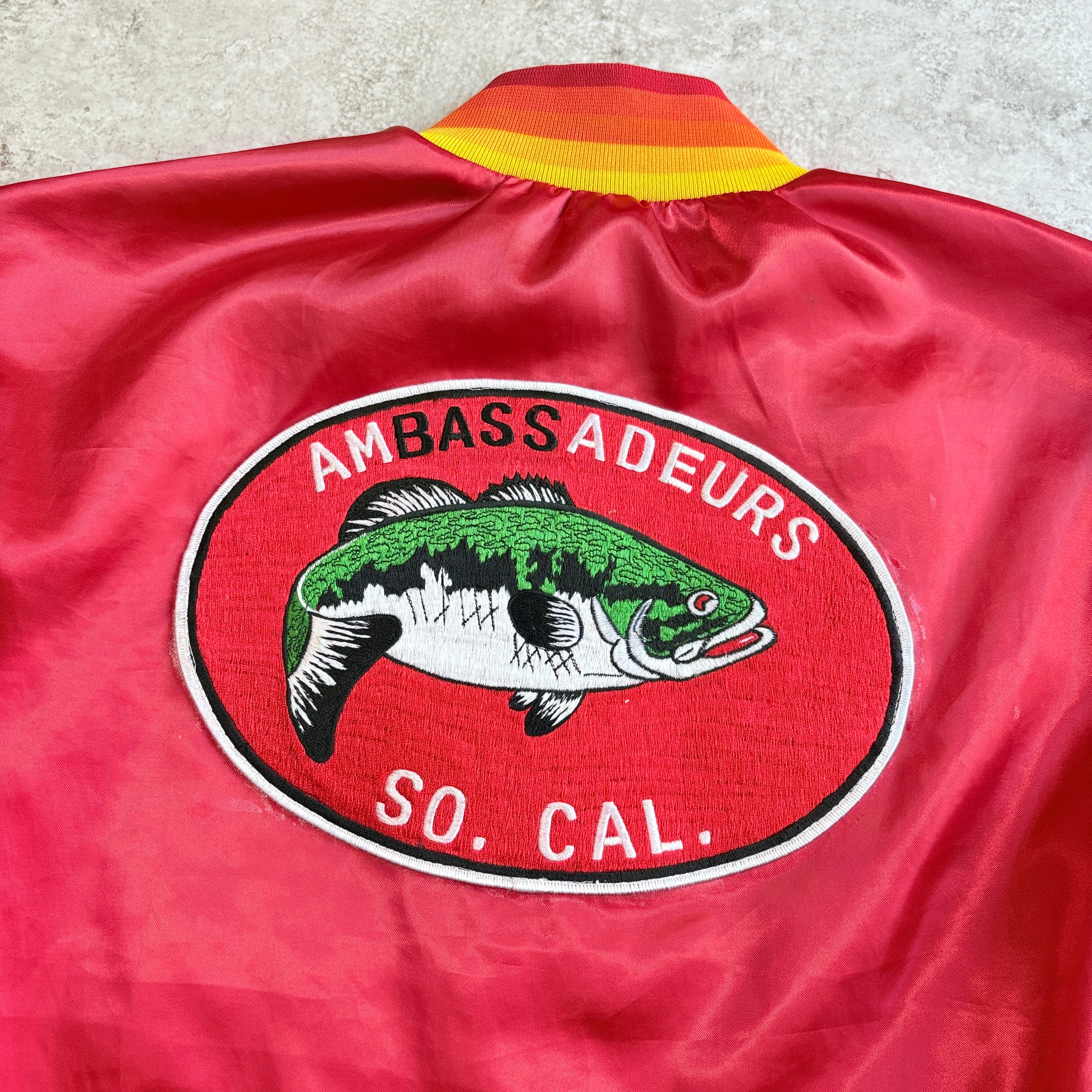 90s USA製 スウィングスター フィッシングパッチ ナイロンスタジャン ナイロンブルゾン ナイロンジャケット 魚 ブラックバス バークレイ