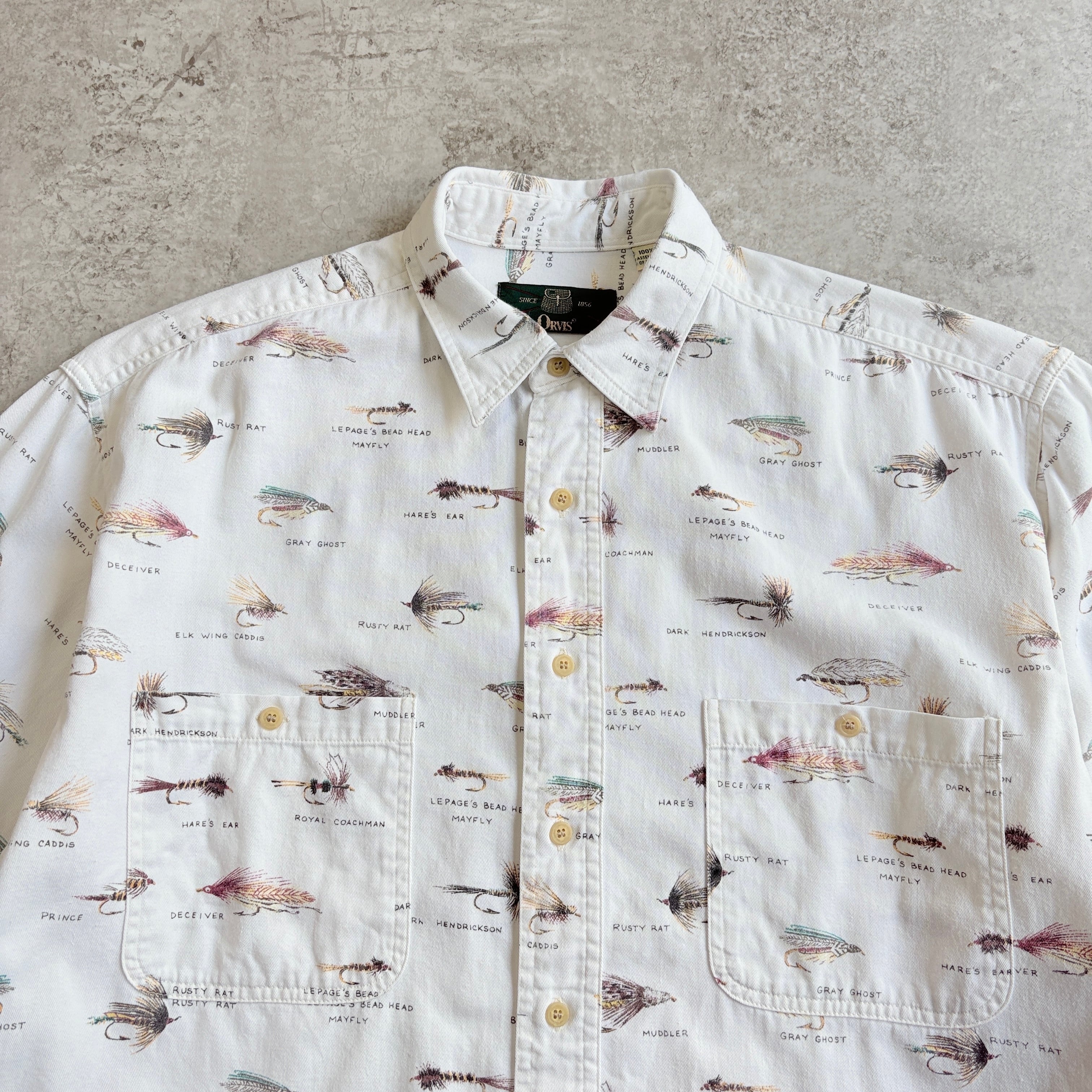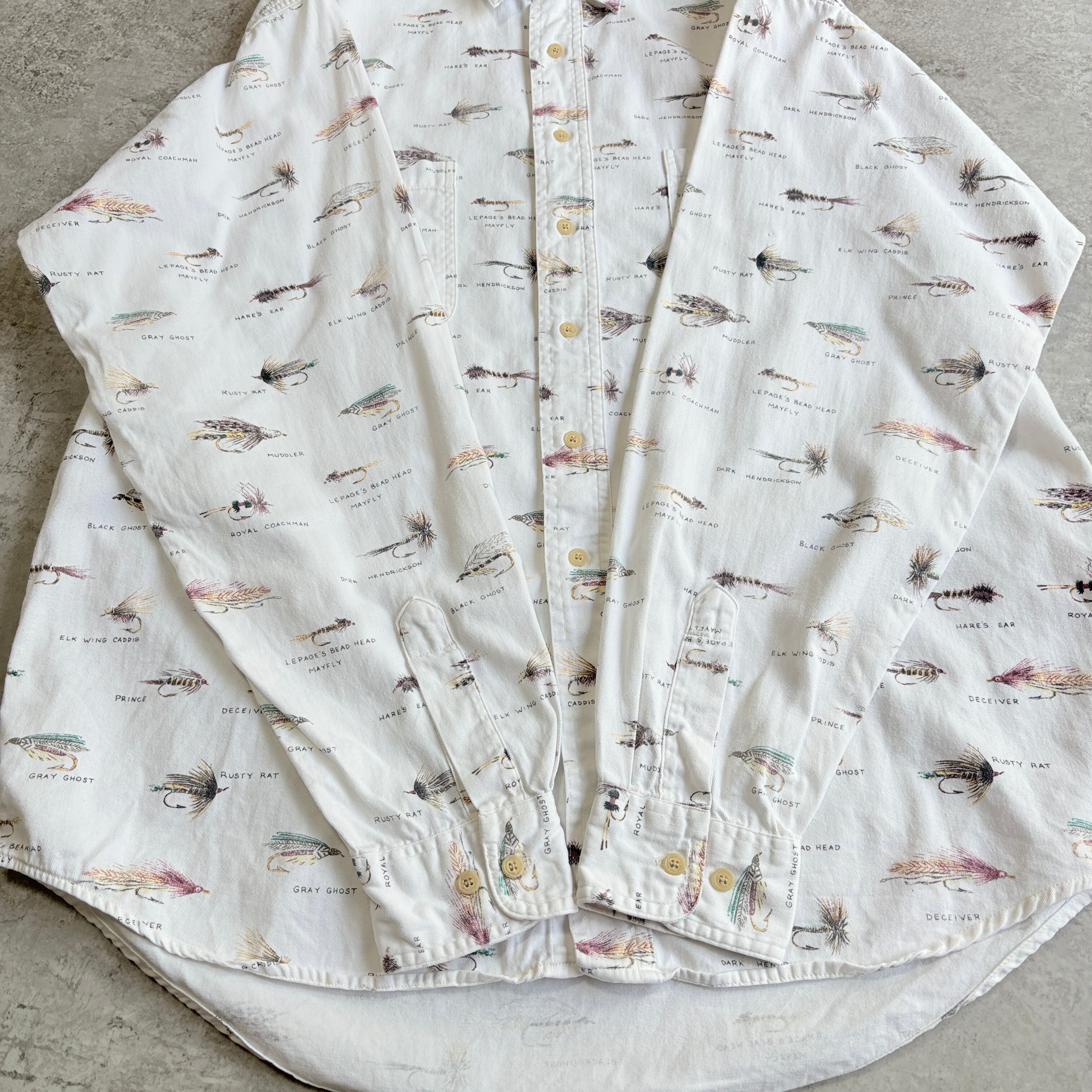 90s MEXICO製 ORVIS Hair needle All Printed Long sleeve Shirt