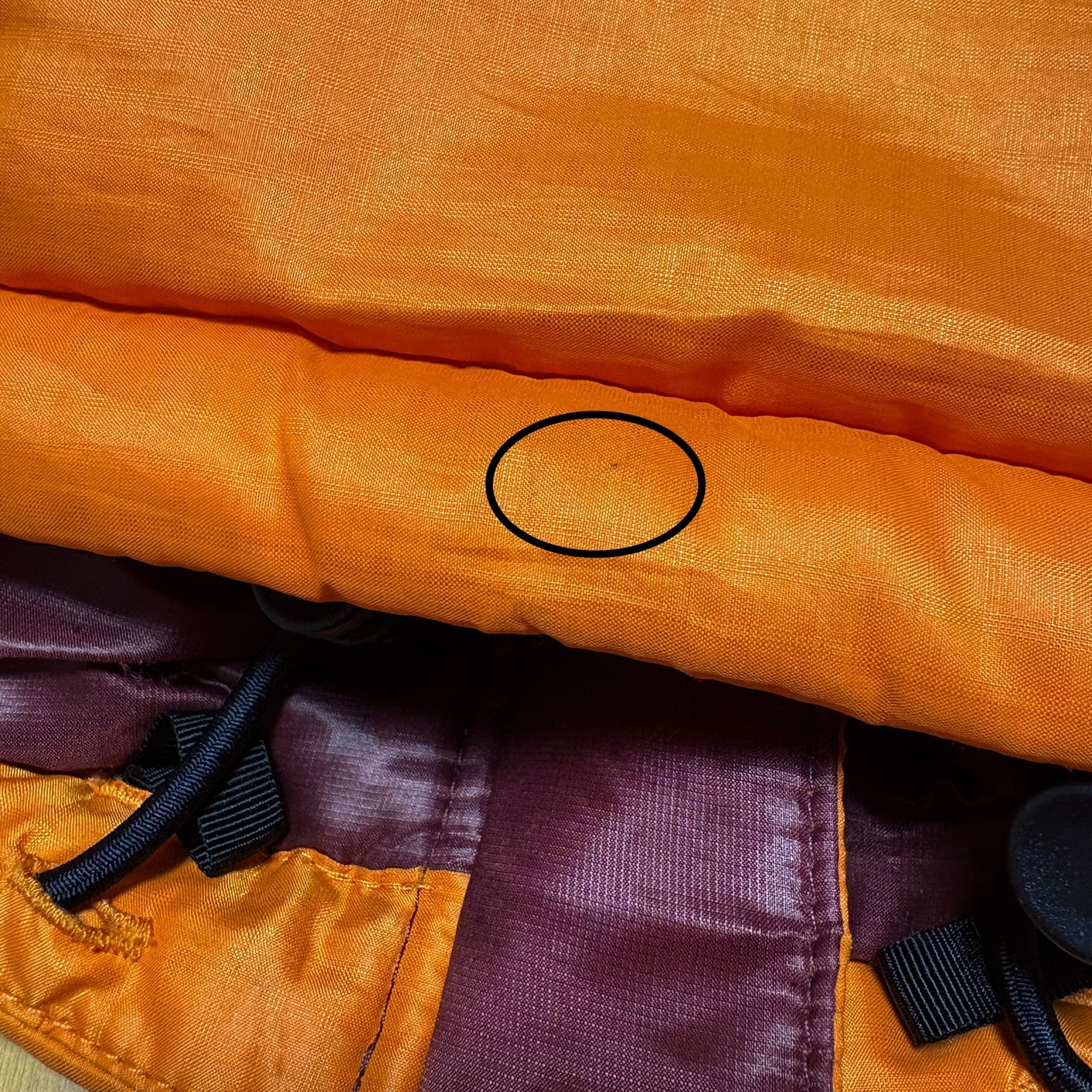 ・フード上部中央 汚れ、右側小さなキズ