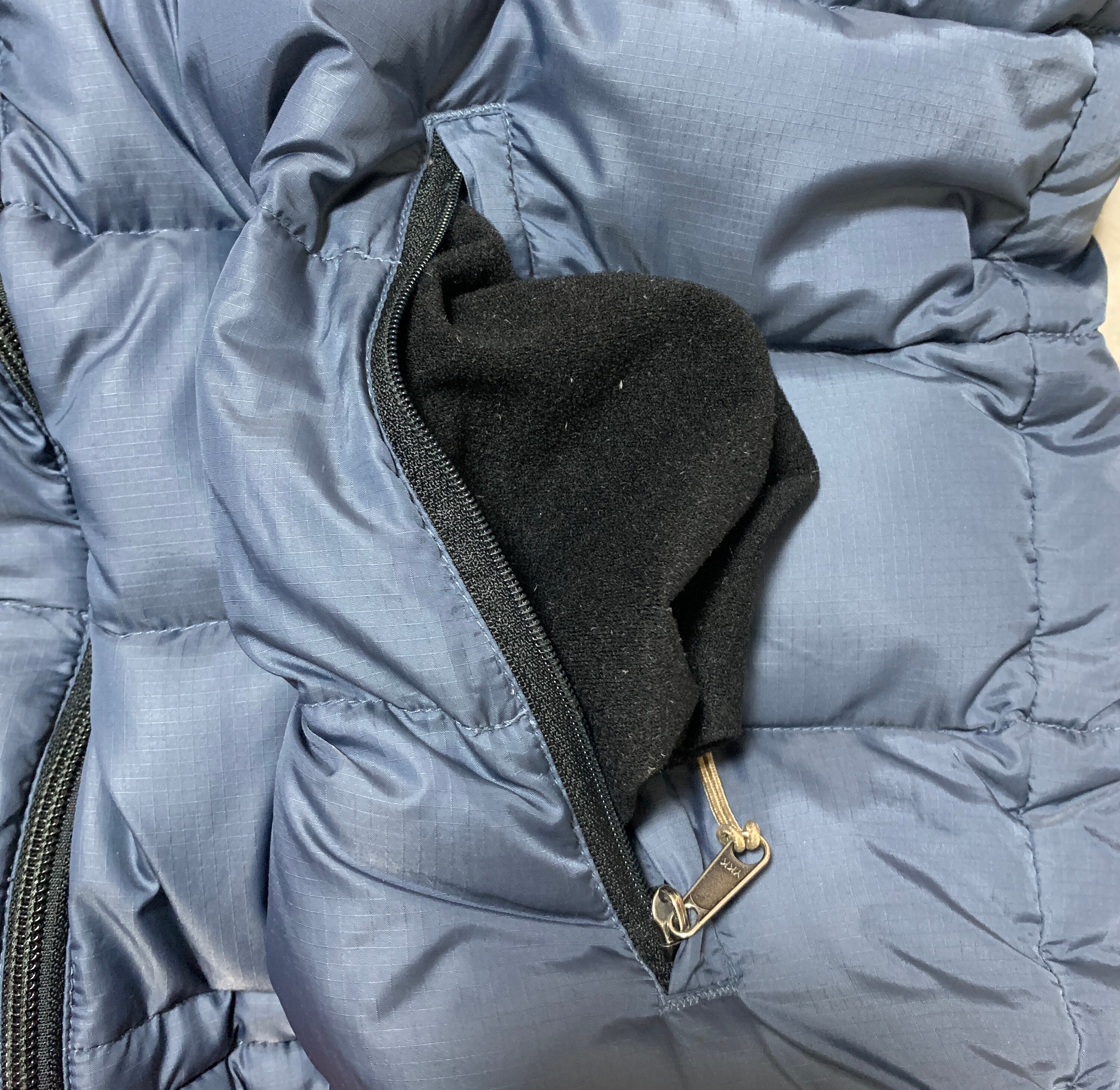 ・裾ポケット内 細かなダウンの毛が付いています