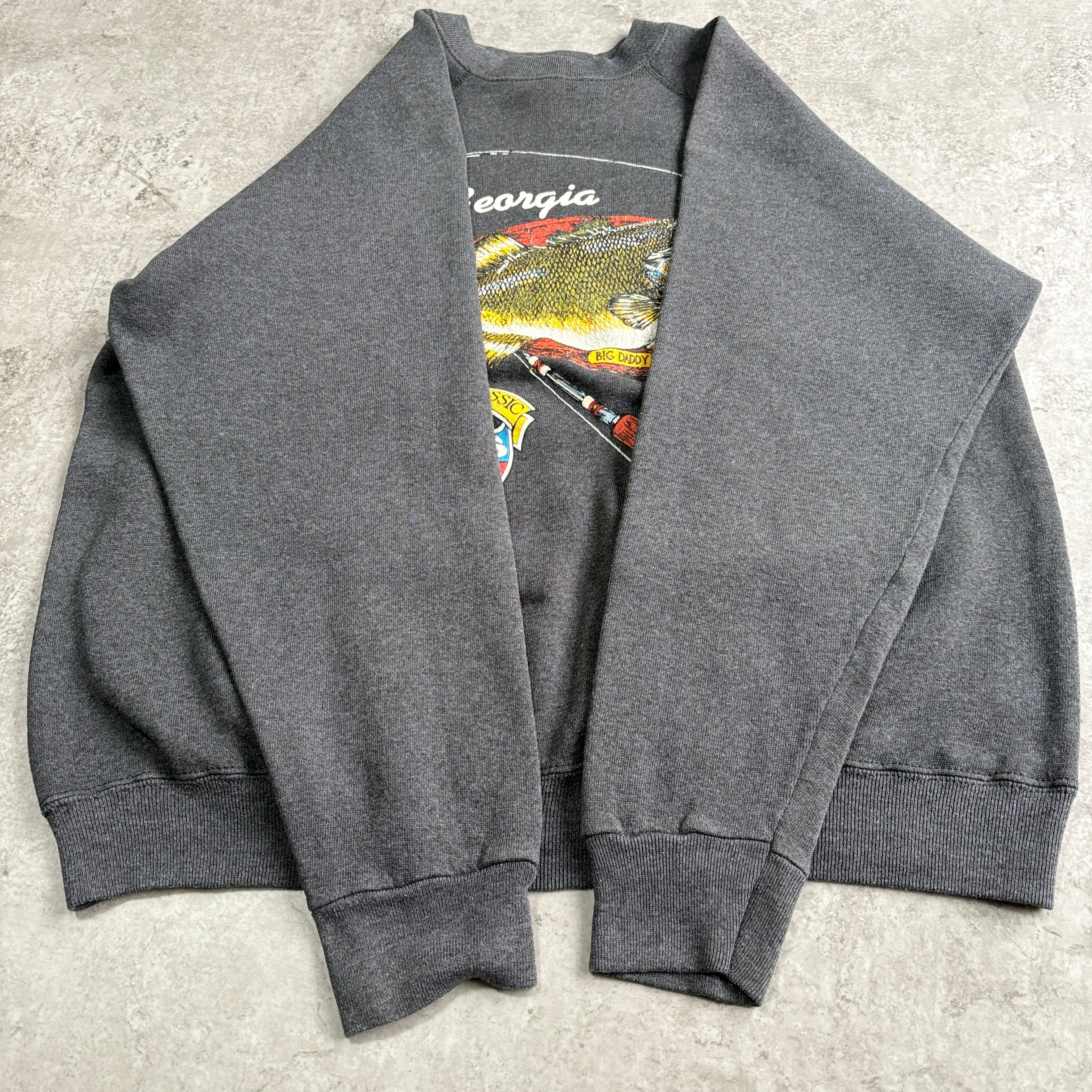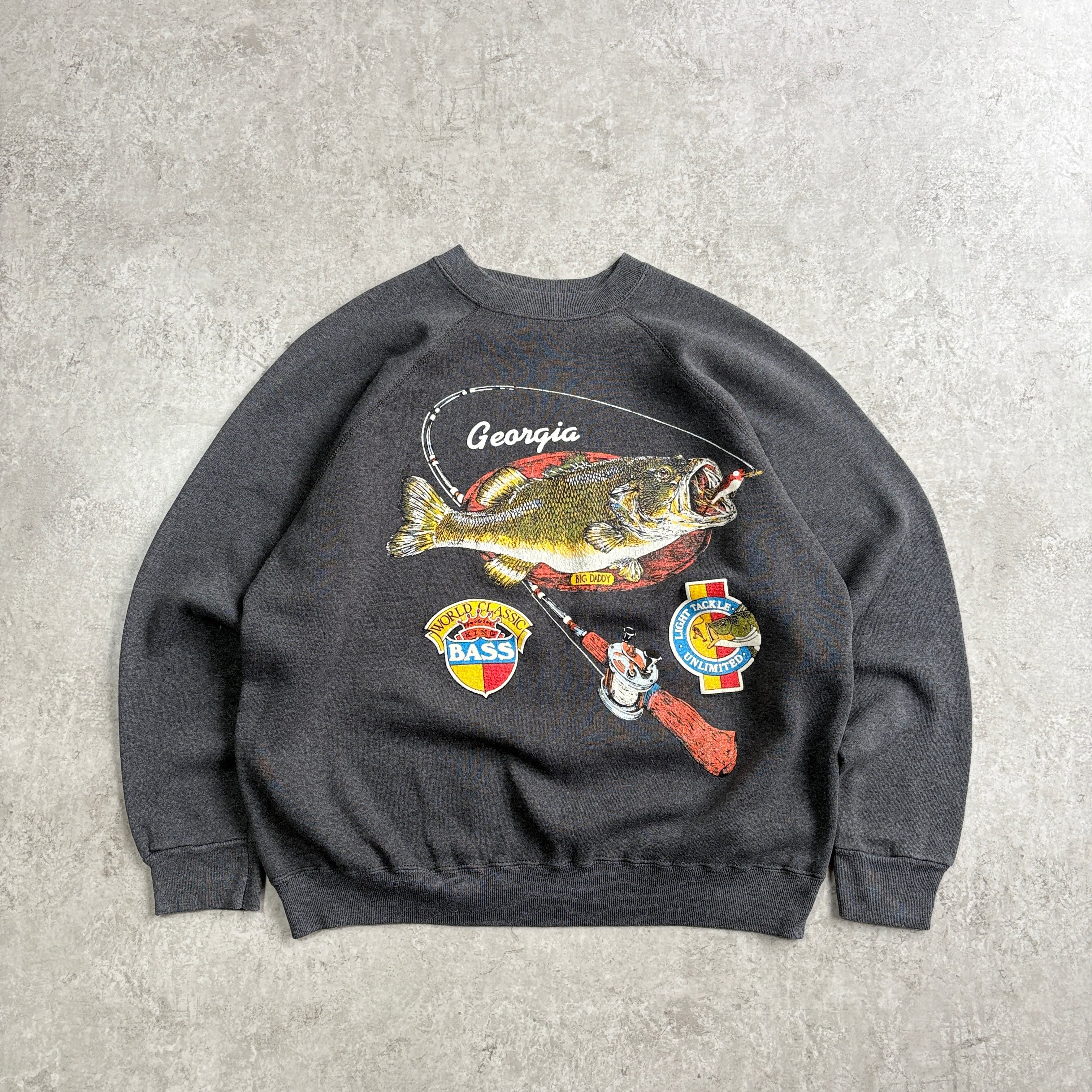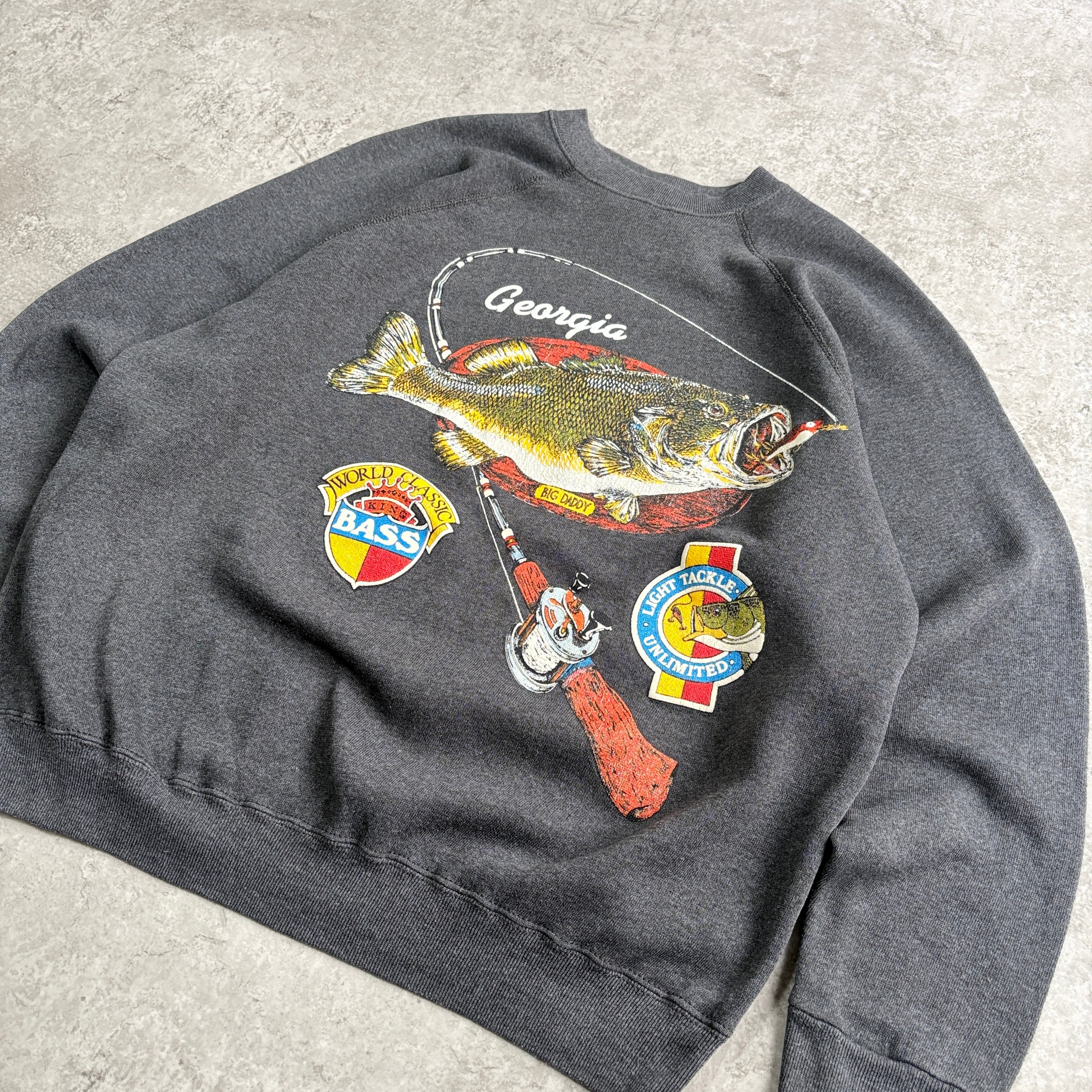80~90s USA製 タルテックス ワールドクラシック キング バス ブラックバス フィッシング 魚 ラグランスウェット プリントスウェット
