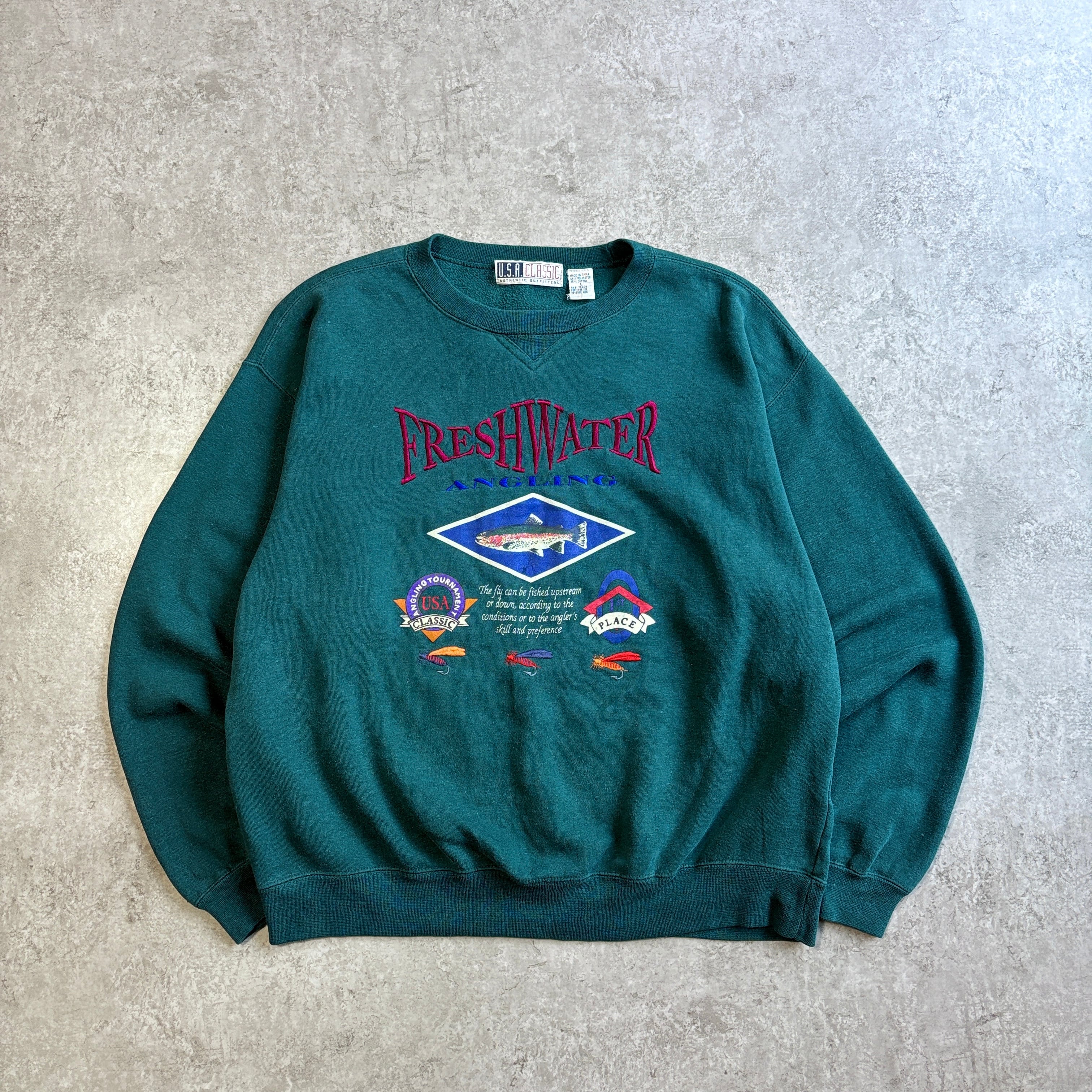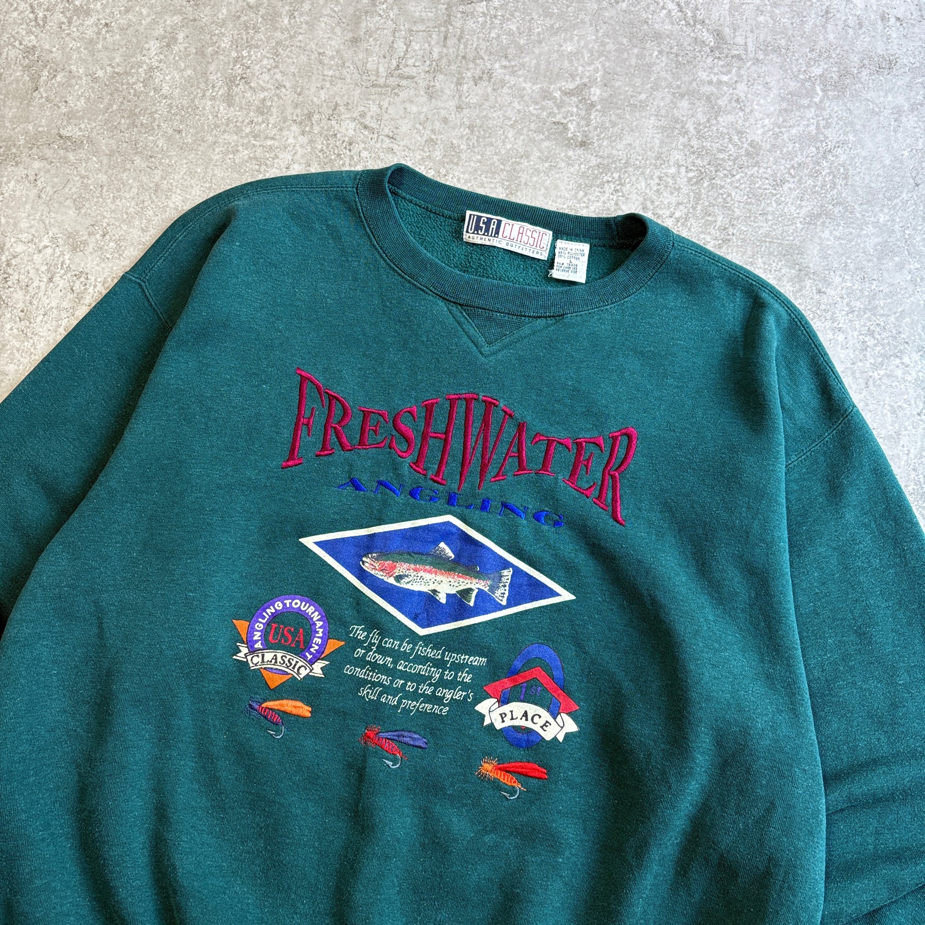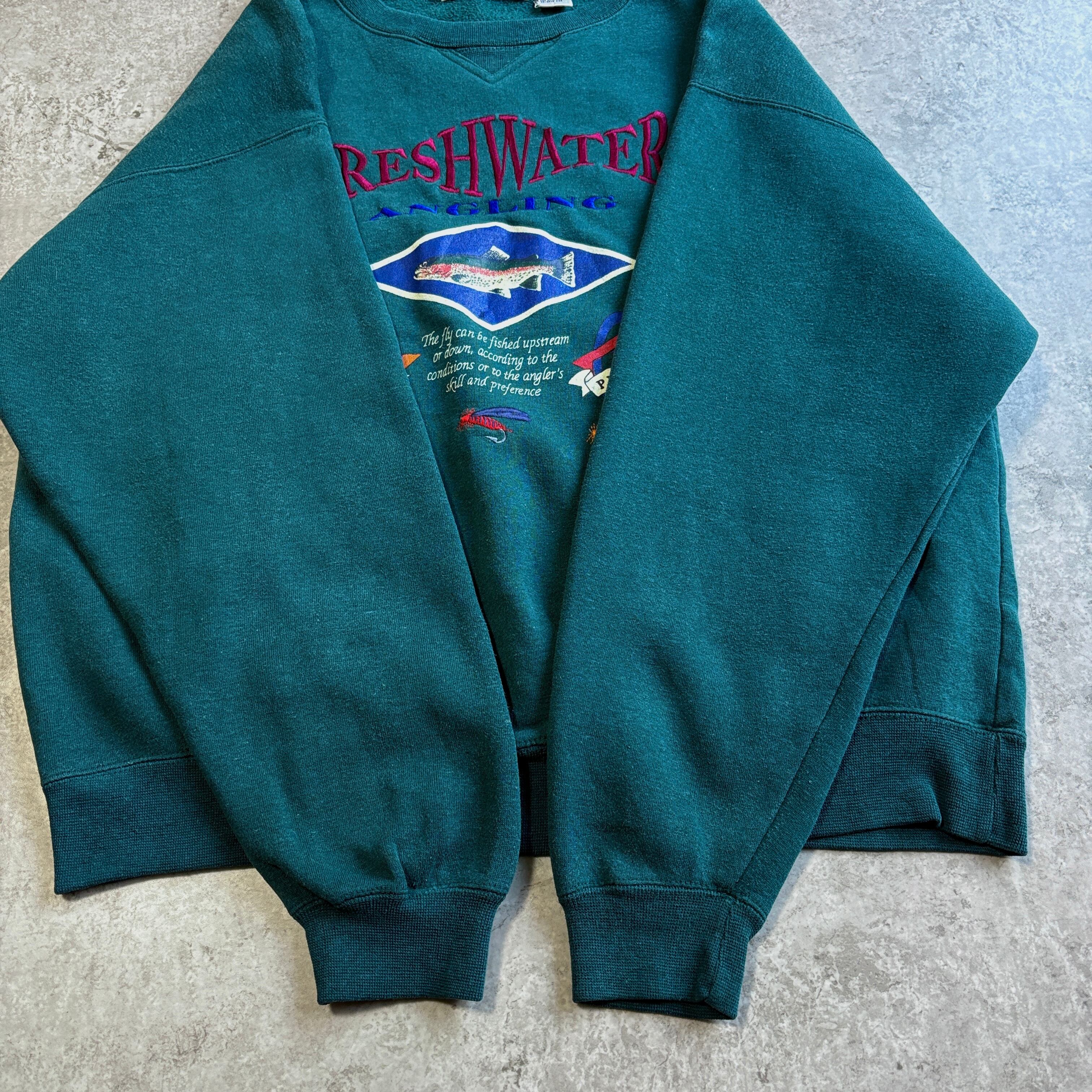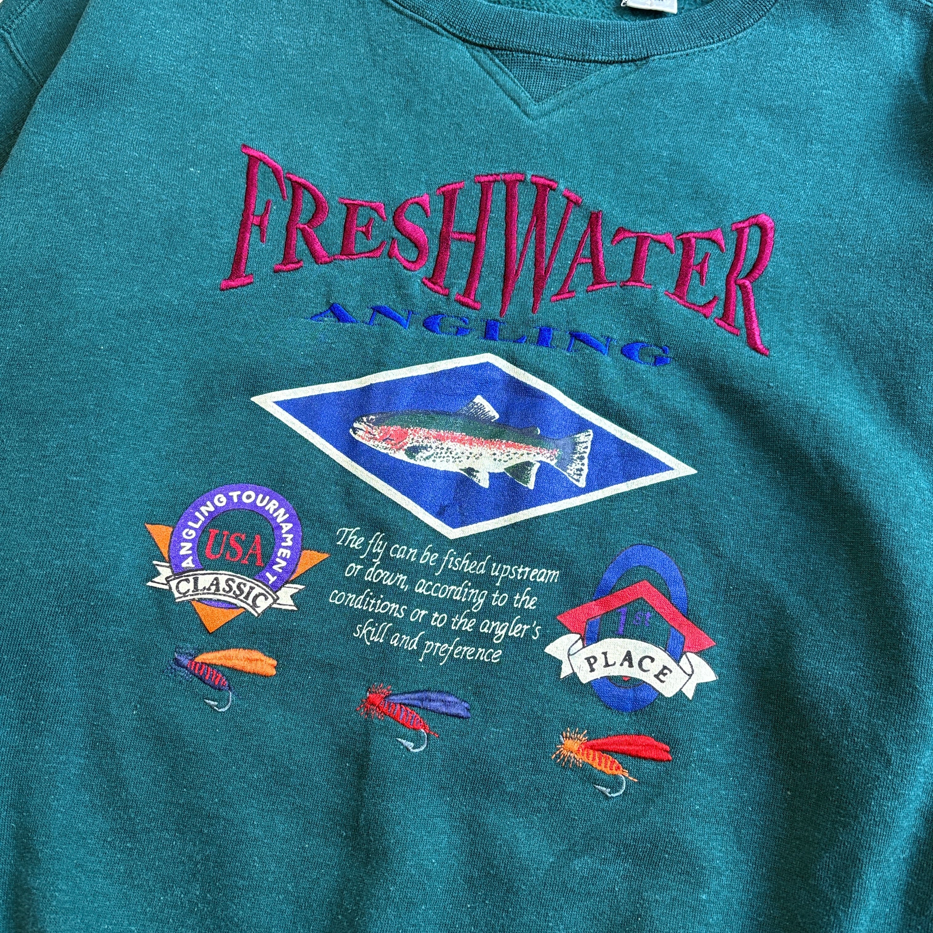 90~00s U.S.A CLASSIC FRESHWATER ANGLING 刺繍 スウェット フィッシング 魚 トラウト