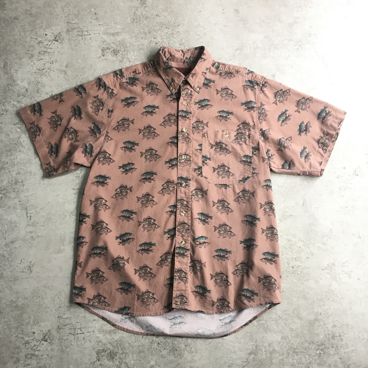 90s ラングラー 魚柄 半袖シャツ フィッシング ブラックバス