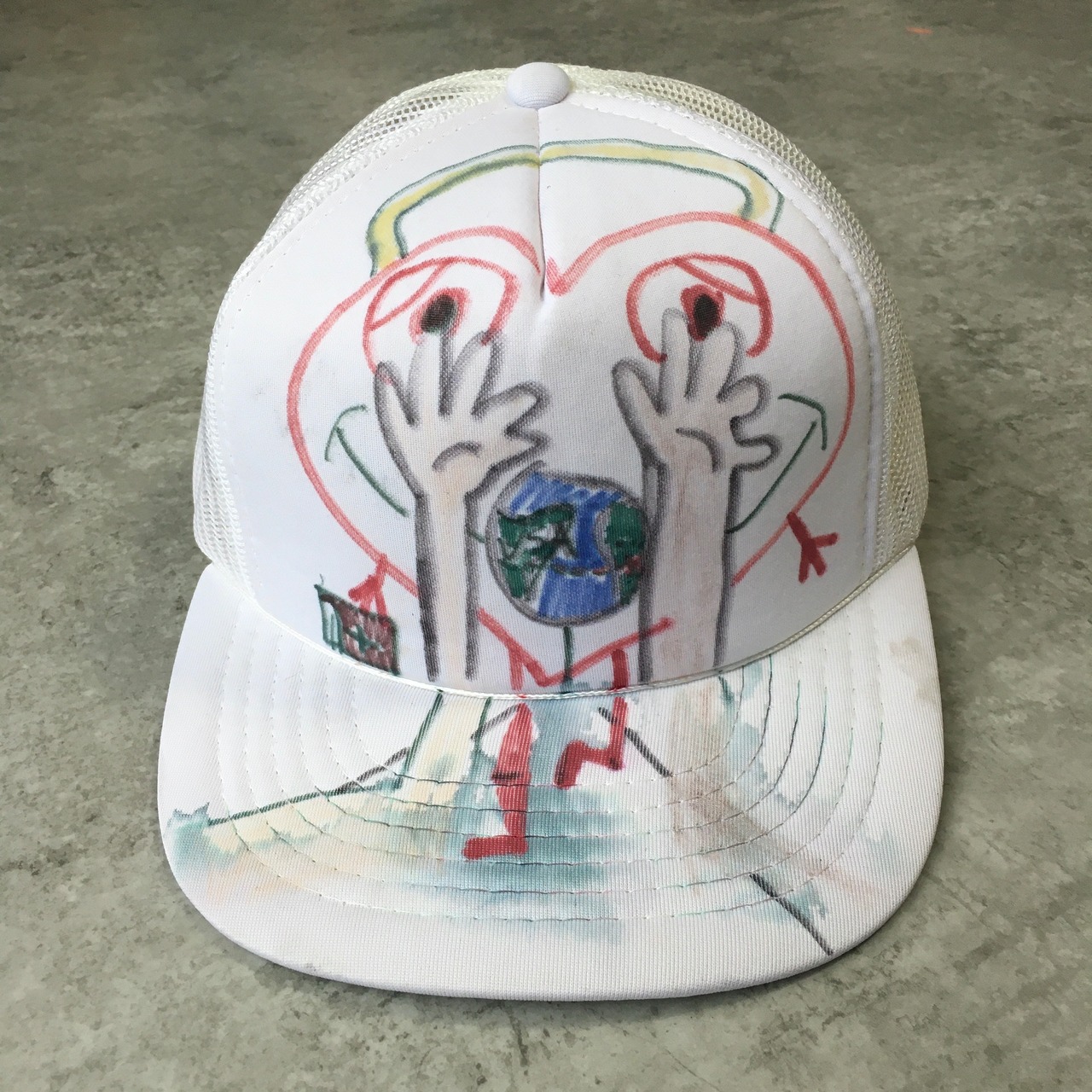 90s From NICO Heart and Earth Hand Painting Art illustration Tracker Cap