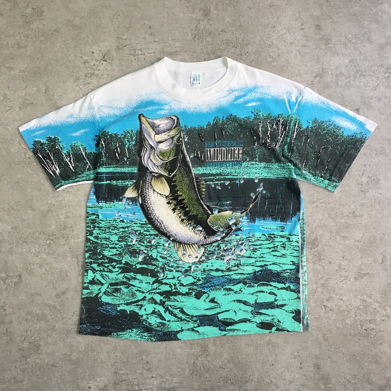 90s USA製 National Wildlife Federation Black Bass Full surface print T-shirt