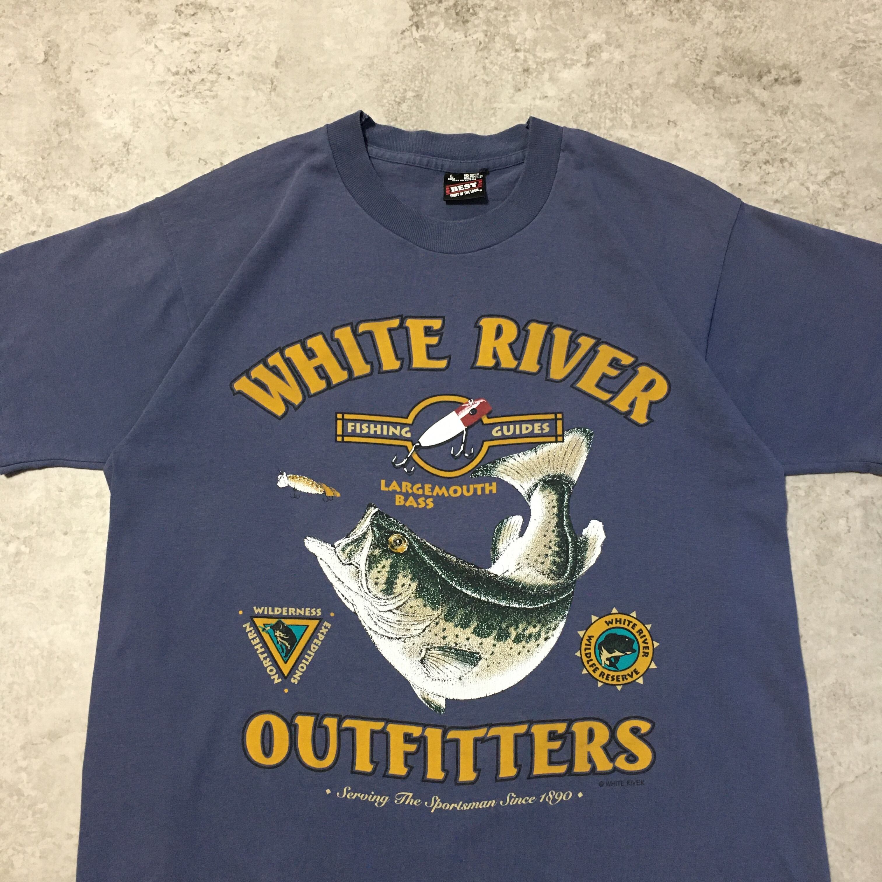80~90s USA製 WHITE RIVER OUTFITTERS Largemouth Bass Printed T-shirt