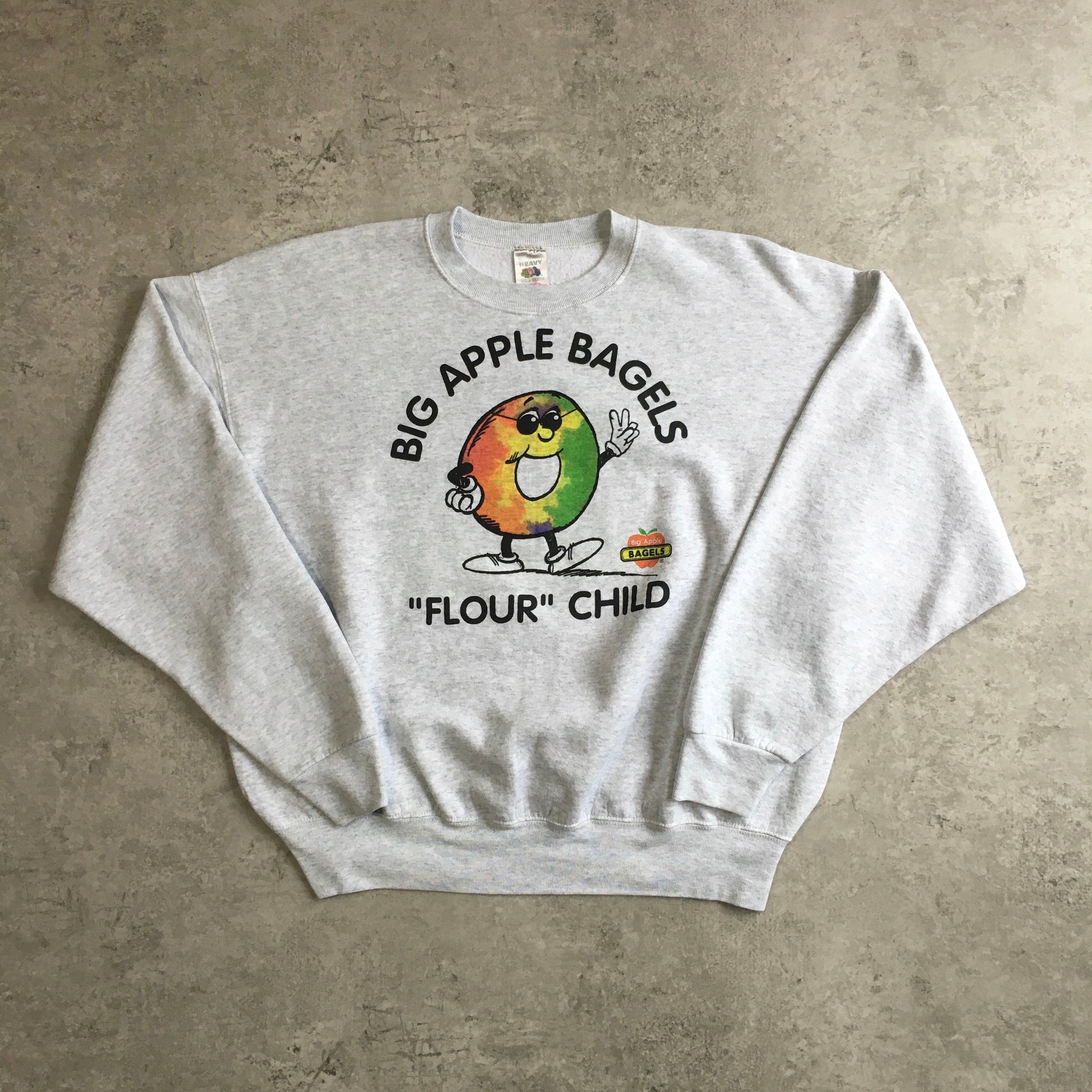 90s USA製 フルーツオブザルーム ”ビッグ アップル ベーグル ” フードロゴ 企業スウェット