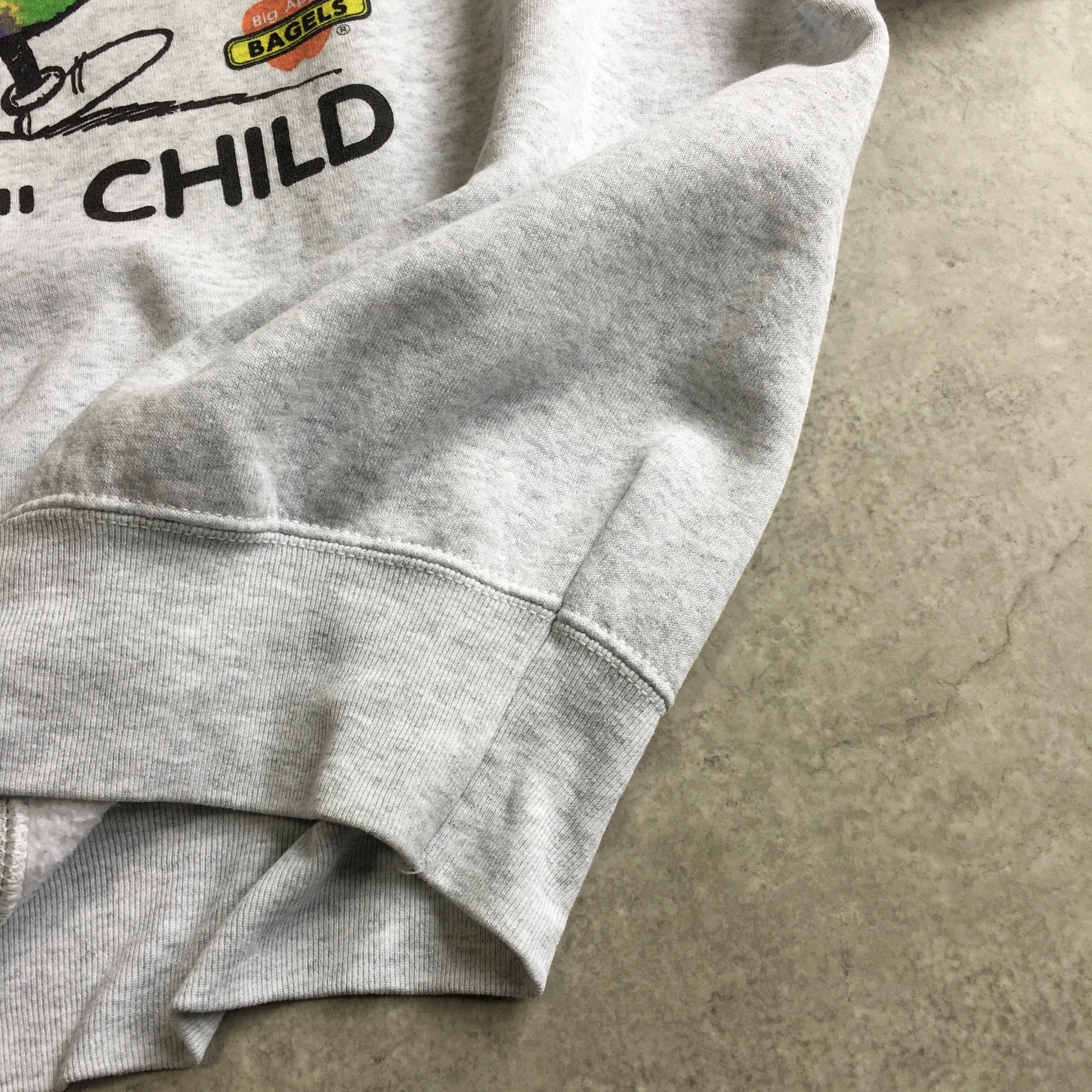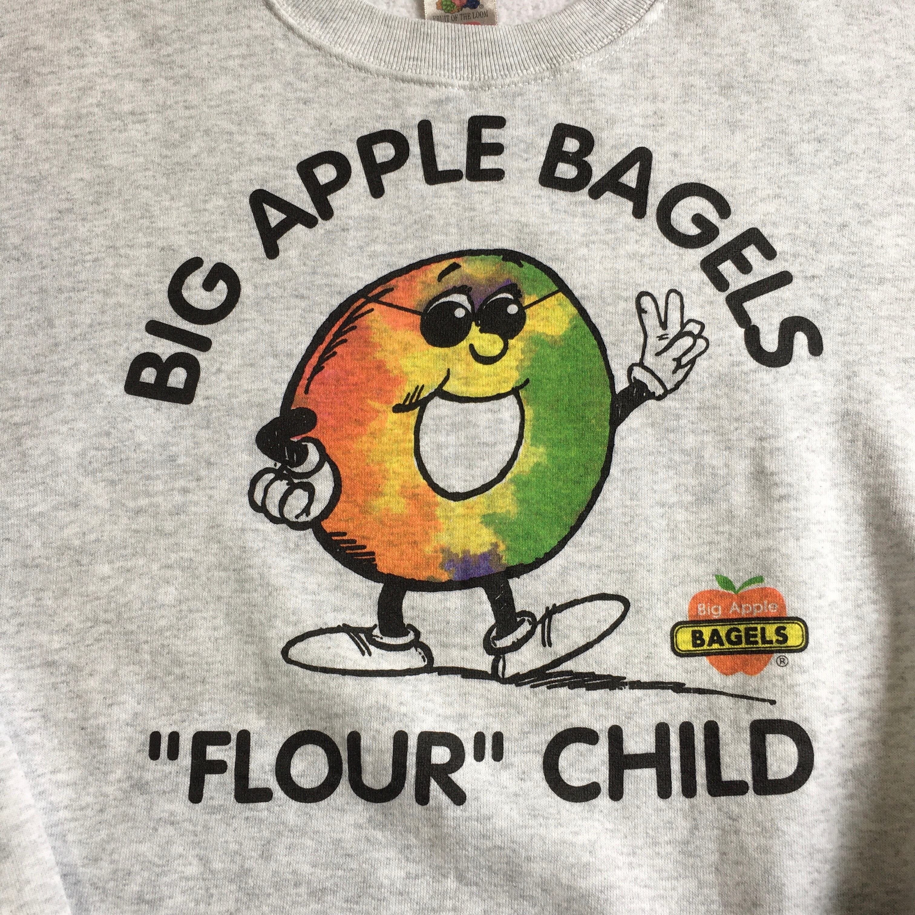 90s USA製 FRUIT OF THE ROOM ” BIG APPLE BAGLES ” Printed Sweatshirt