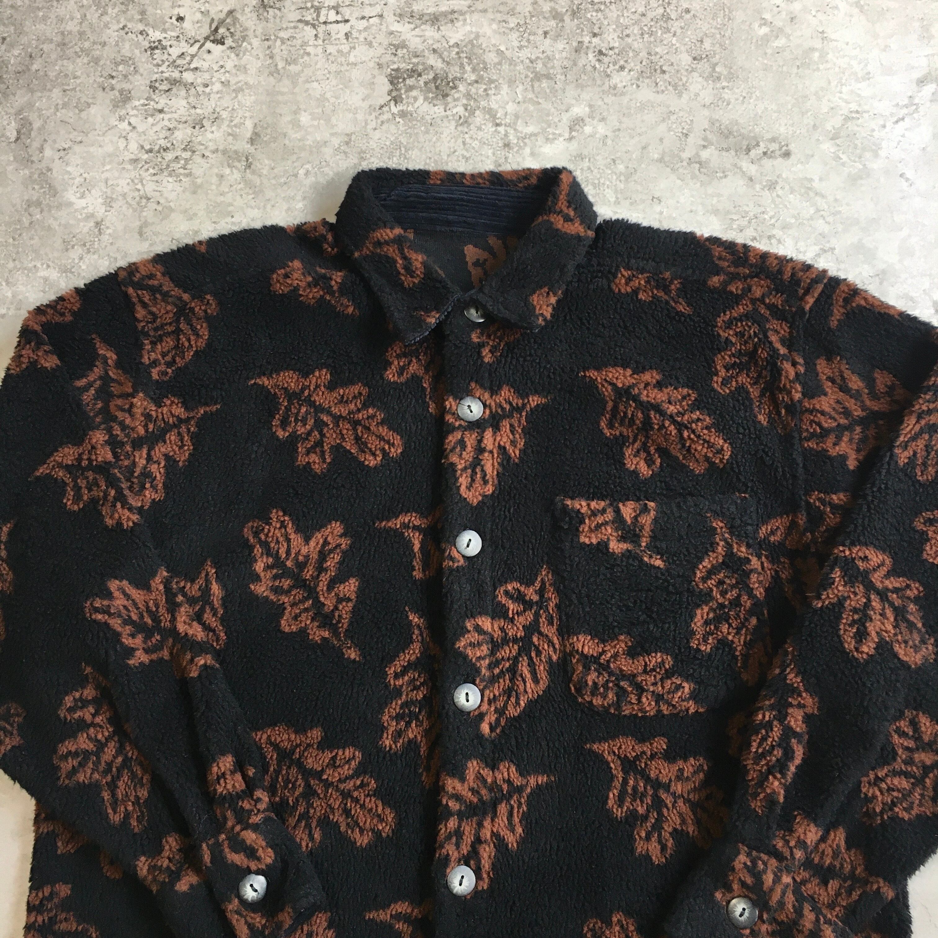 90s USA製 True Grit Leaf Pattern Boa Fleece Shirt