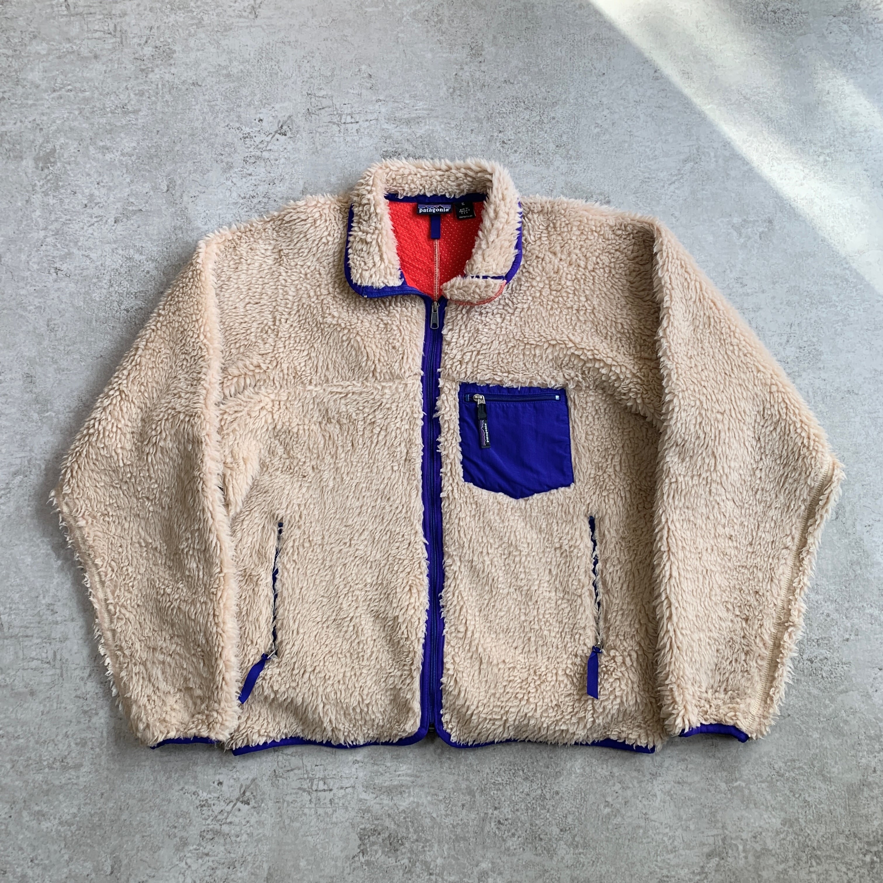 00s 2000年 USA製 パタゴニア クラシック レトロカーディガン 【オフホワイト × ブルー】XL
