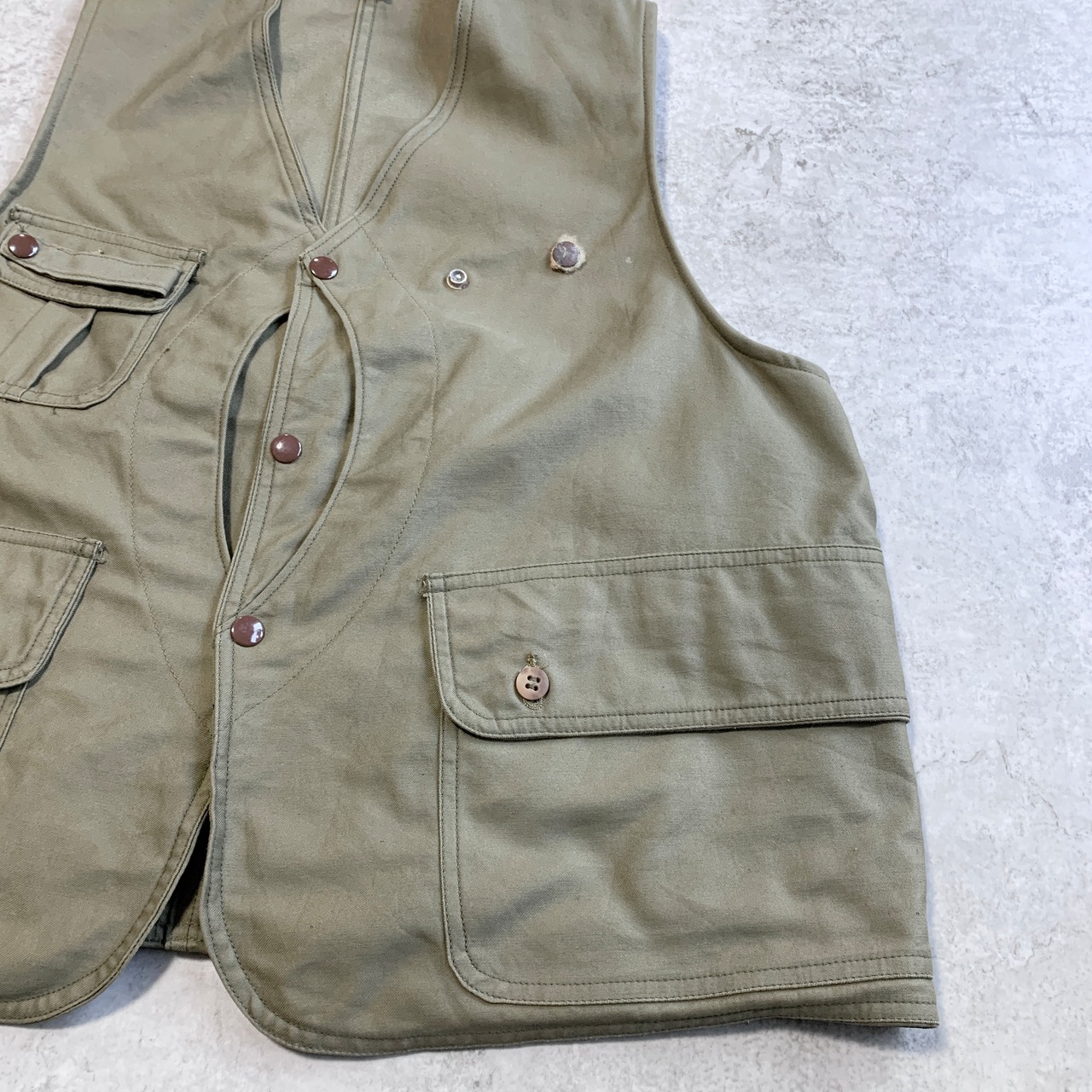 ・前身頃左胸 フライパッチ取れ・ボタンサビ・汚れ